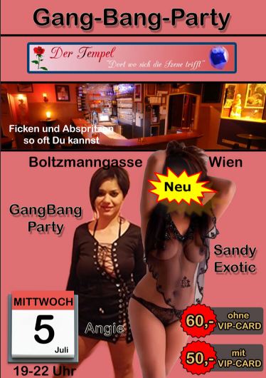 » Mittwoch, 19.07.2017 GRATIS GANG BANG PARTY von 19:00 - 22:00 Uhr « |